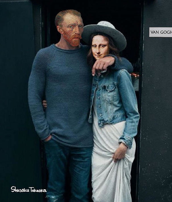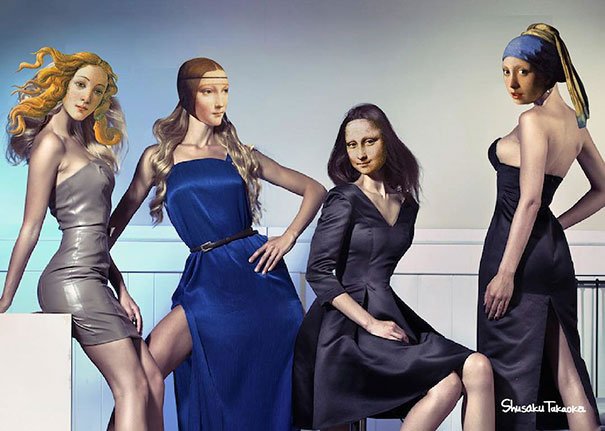 Šusaku Takaoka (Shusaku Takaoka) japanski je grafički dizajner čija je specijalnost pretvaranje klasične umetnosti u savremenu kulturu. Na taj način on oživljava istoriju i odgovara na nepostavljena pitanja: da li bi Mona Liza obukla modernu trenerku kad bi joj dosadile svilene halje? Da li bi bila u vezi s Vinsentom van Gogom? Da li bi pozirala u kupaćem kostimu dok na plaži ispija koktele? Ili bi se Devojka sa bisernom minđušom našla na naslovnim stranama modnih časopisa? Da li bi imala psa i najnoviji model Ajfona? Kako bi se Venera – obučena – snašla u njujorškom metrou? Da su filmske zvezde današnjice, da li bi se skrivali od paparaca ili ponosno pokazivali svoje tetovaže?