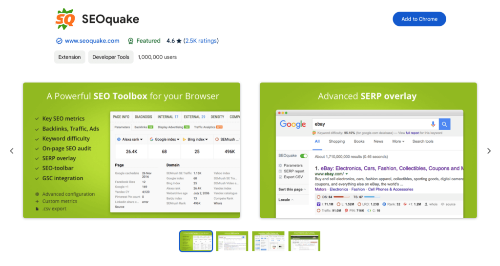 Seoquake is one of the most popular SEO extensions for Chrome. It offers a wide range of SEO tools, including: